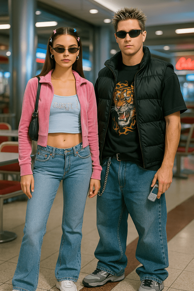 (In the image above I asked ChatGPT to capture Y2K fashion and I think it did a pretty good job. The setting at the food court is also relevant since people still hung out at malls back then).
