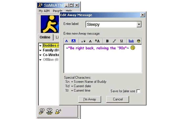 1997 – AOL Instant Messenger (AIM) is released and becomes common by 1999.